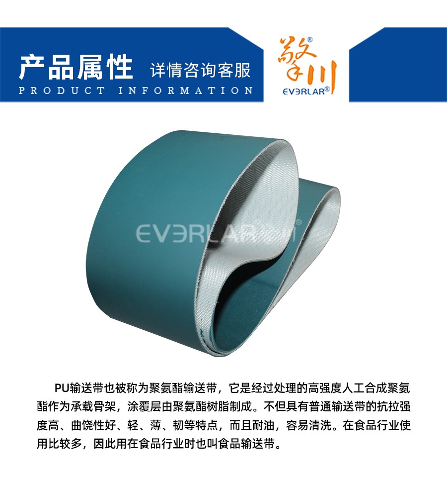 PU輸送帶也被稱為聚氨酯輸送帶,它是經(jīng)過處理的高強(qiáng)度人工合成聚氨酯作為承載骨架,涂覆層由聚氨酯樹脂制成。不但具有普通輸送帶的抗拉強(qiáng)度高、曲饒性好、輕、薄、韌等特點(diǎn),而且耐油,容易清洗。在食品行業(yè)使用比較多,因此用在食品行業(yè)時(shí)也叫食品輸送帶。