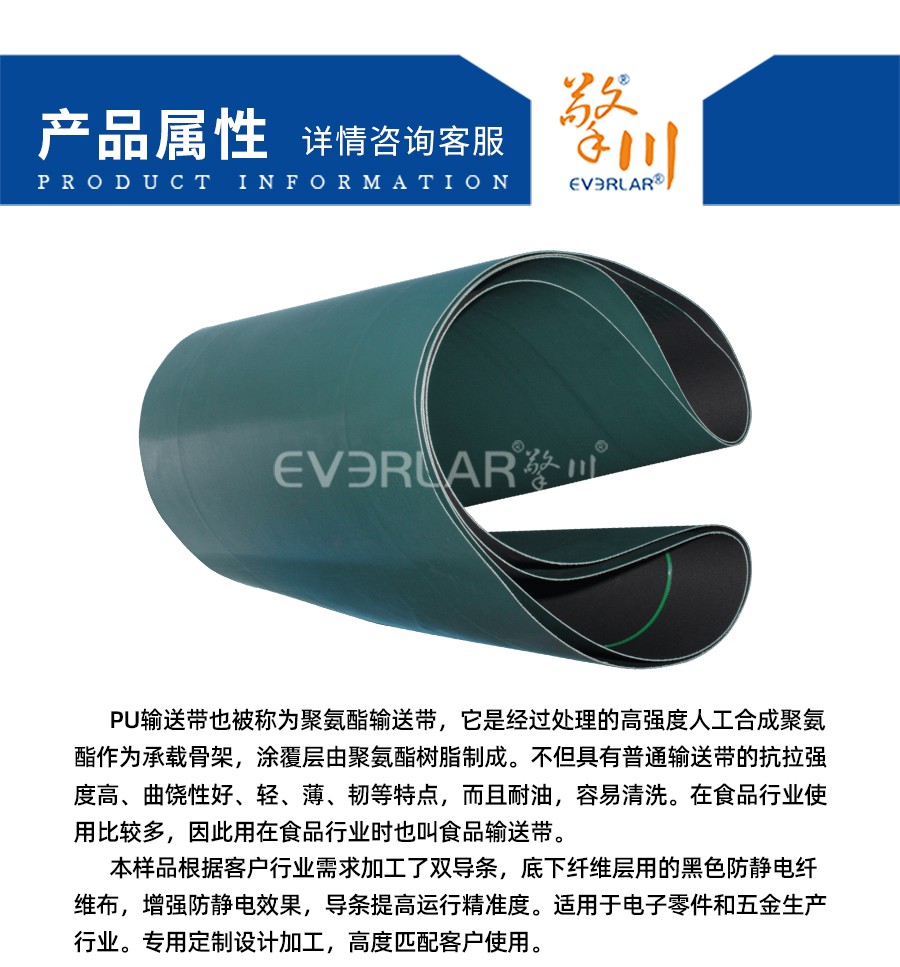 產(chǎn)品名稱:墨綠色PU輸送帶加導(dǎo)條