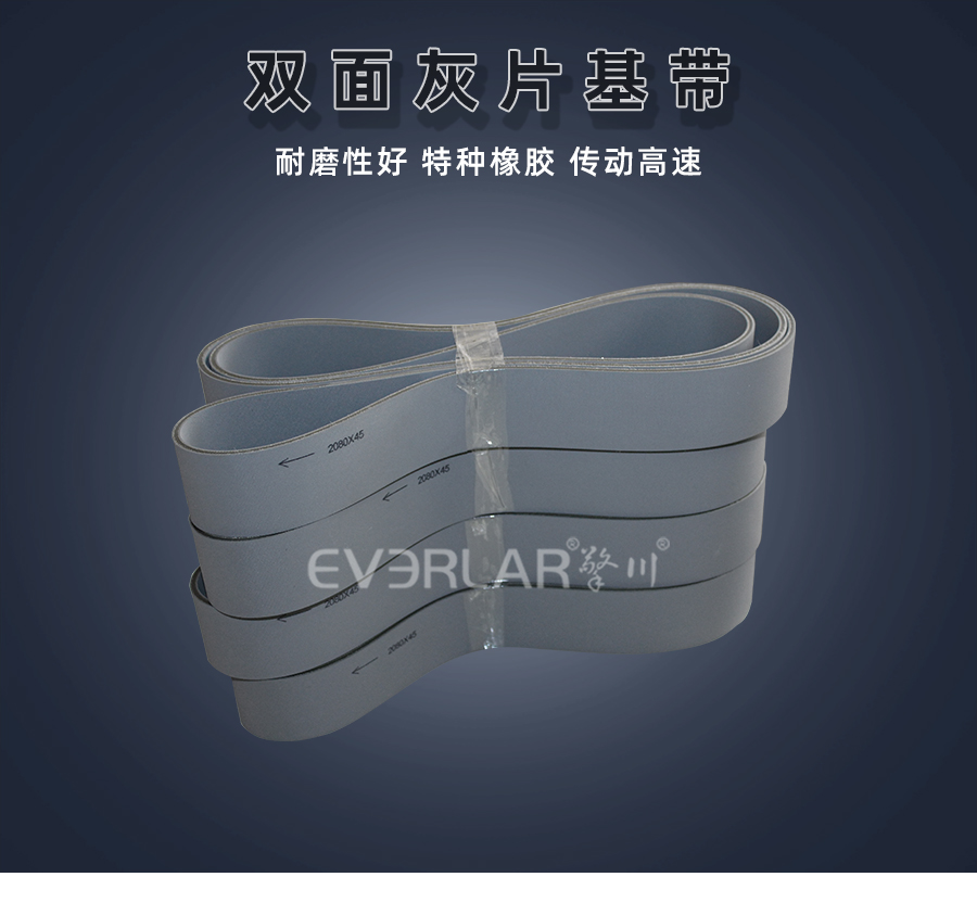 高速傳動(dòng)平面帶,通常我們稱它為片基帶,片基帶中間有尼龍片基層,表面通常會(huì)選擇覆蓋橡膠、牛皮、纖維布等材質(zhì)。雙面灰色片基帶,帶厚通常在0.8-6mm范圍。