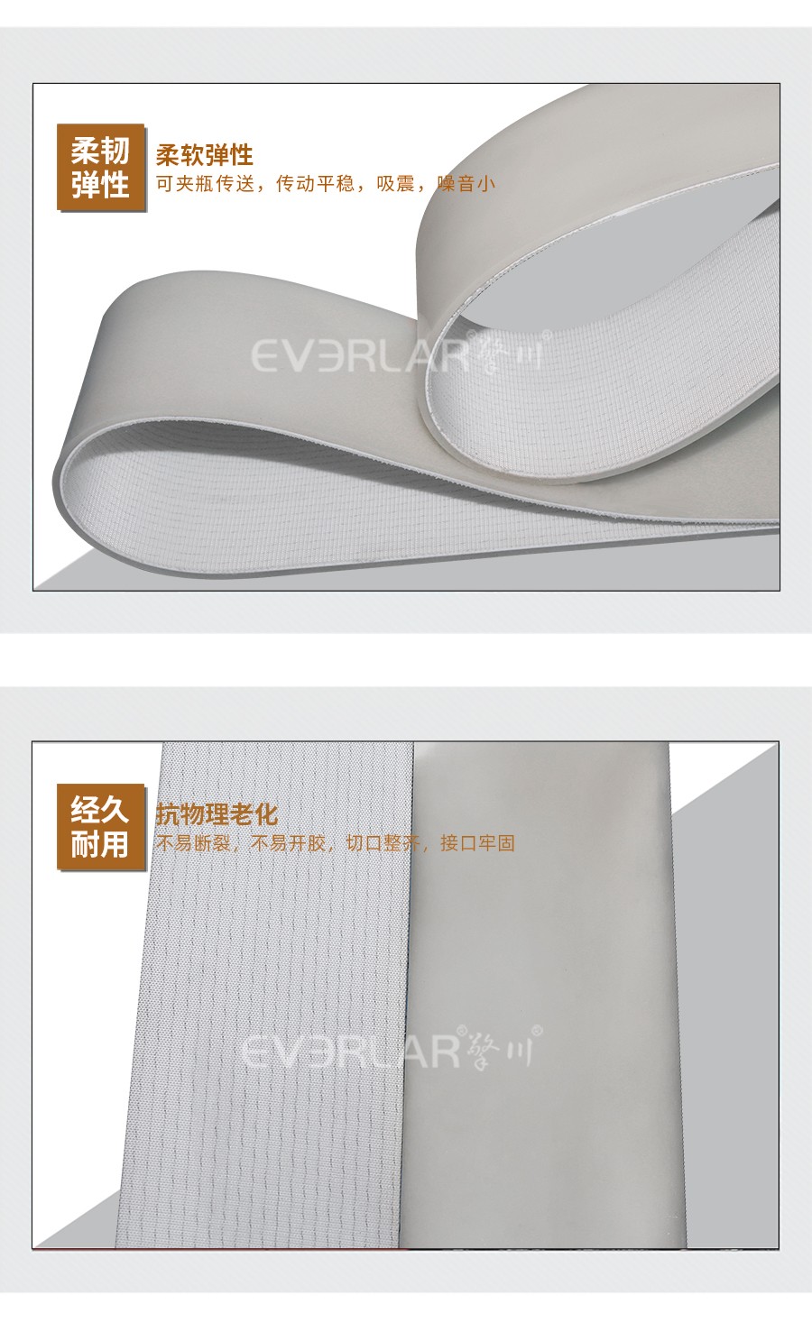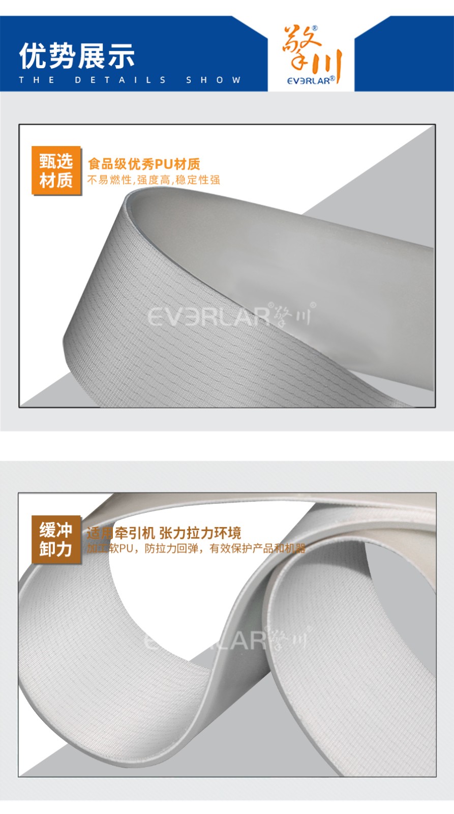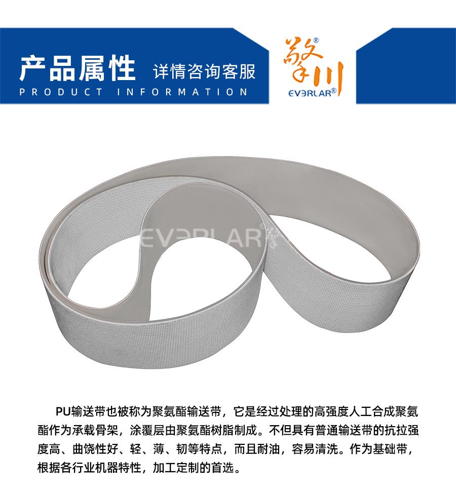 PU輸送帶也被稱為聚氨酯輸送帶,它是經(jīng)過(guò)處理的高強(qiáng)度人工合成聚氨酯作為承載骨架,涂覆層由聚氨酯樹(shù)脂制成。不但具有普通輸送帶的抗拉強(qiáng)度高、曲饒性好、輕、薄、韌等特點(diǎn),而且耐油,容易清洗。在食品行業(yè)使用比較多,因此用在食品行業(yè)時(shí)也叫食品輸送帶。