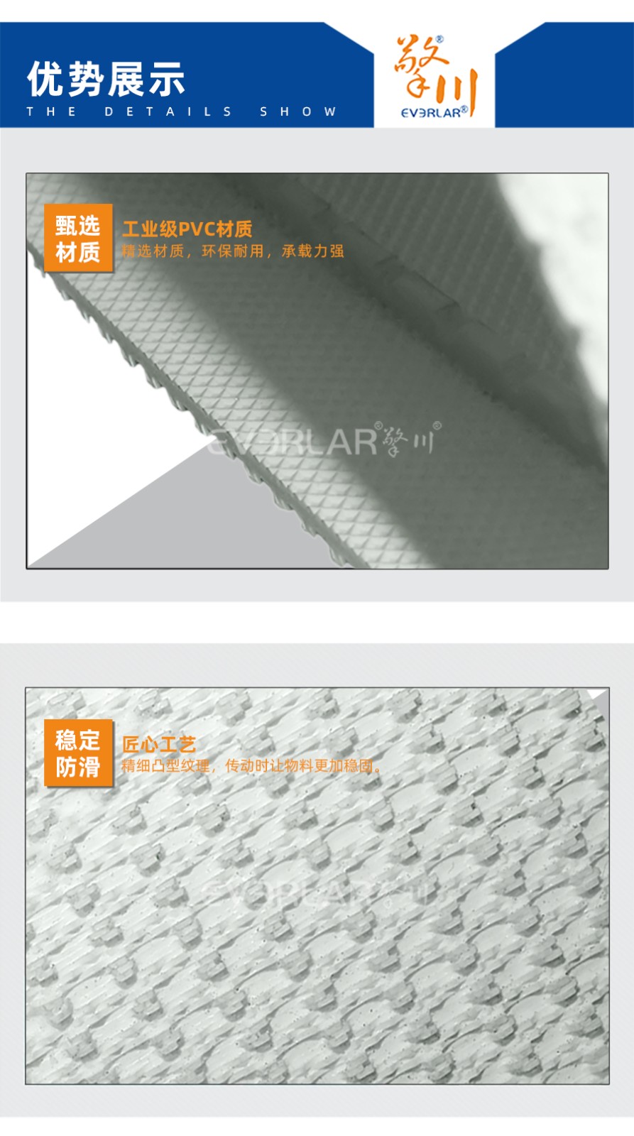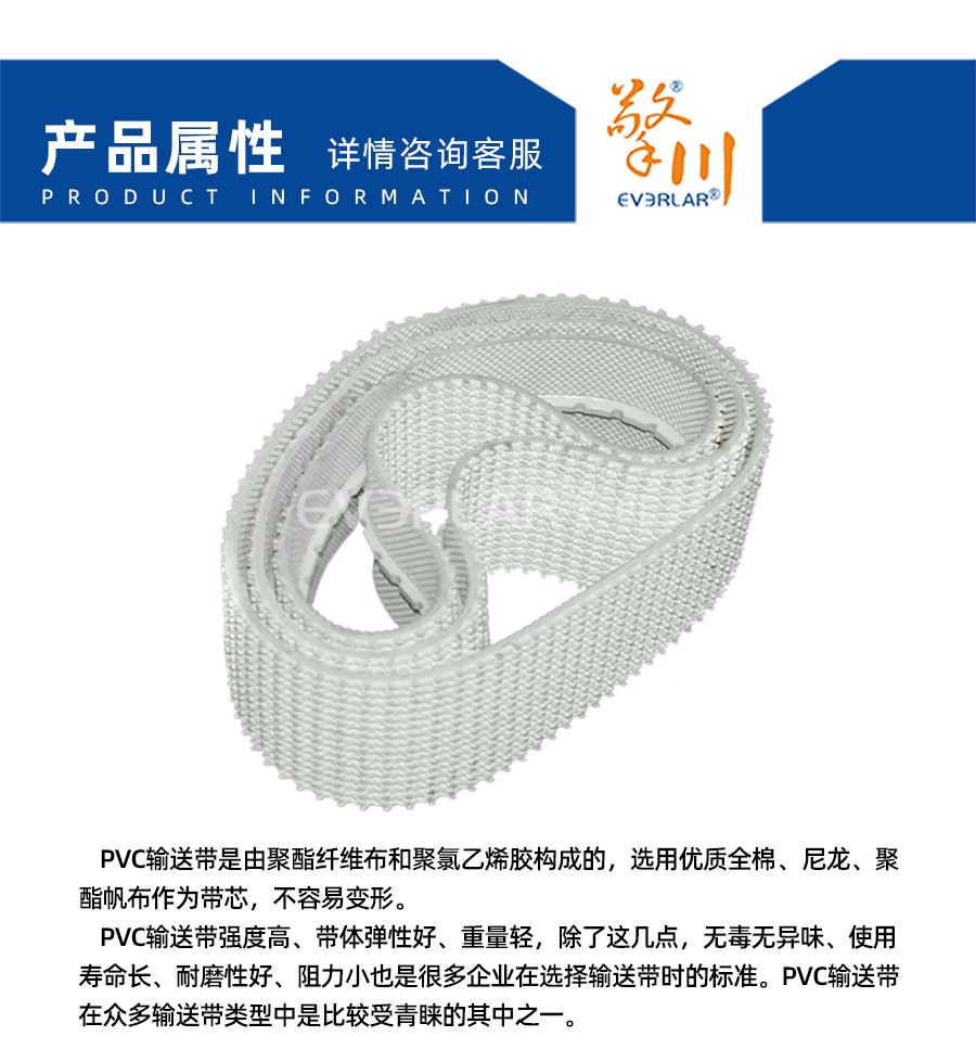 PVC輸送帶是由聚酯纖維布和聚氯乙烯膠構成的,選用優(yōu)質全棉、尼龍、聚酯帆布作為帶芯,不容易變形。
