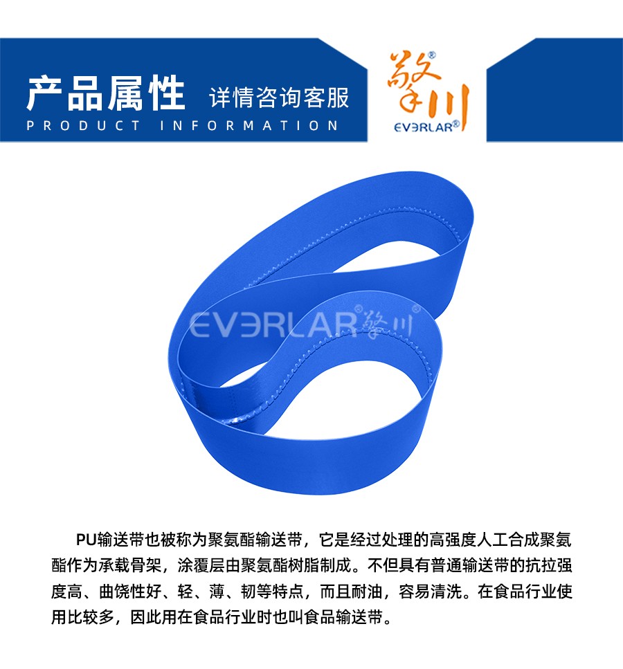 產(chǎn)品名稱:藍(lán)色PU食品輸送帶加導(dǎo)條