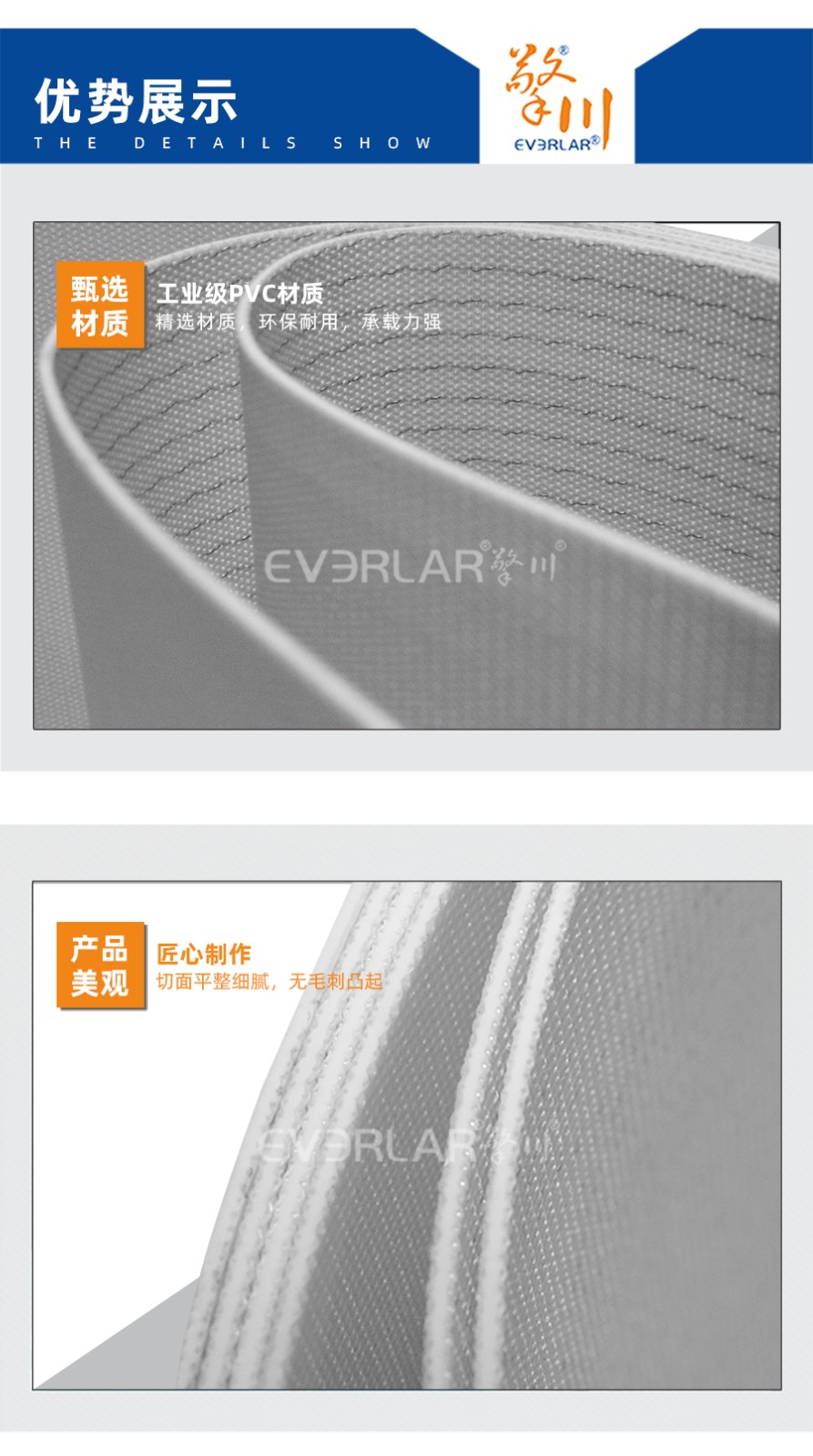 本樣品為PVC雙面纖維輸送帶,具有耐油的作用,摩擦系數(shù)大。我司的輸送帶長(zhǎng)度和寬度可根據(jù)客戶要求定制,另外可根據(jù)客戶需求對(duì)輸送帶進(jìn)行特殊加工,例如加導(dǎo)條,加擋板、擋塊及裙邊等。