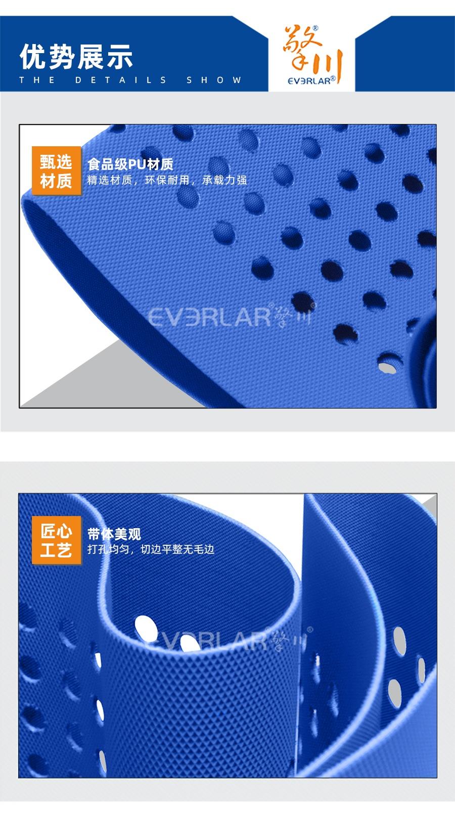 產(chǎn)品名稱:藍(lán)色鉆紋PU輸送帶打孔