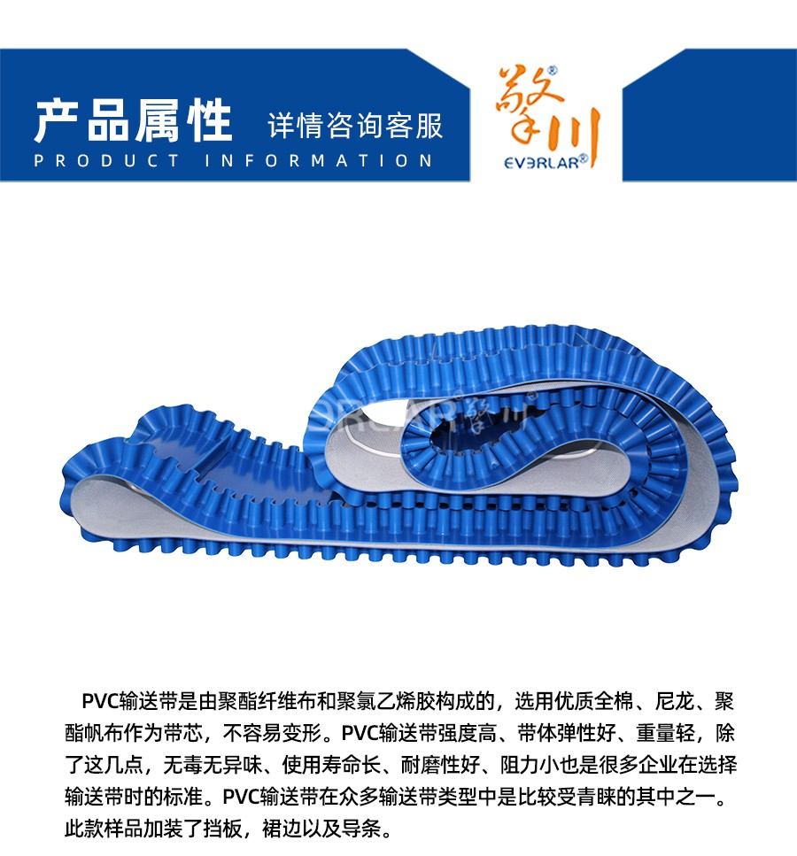PVC輸送帶是由聚酯纖維布和聚氯乙烯膠構(gòu)成的,選用優(yōu)質(zhì)全棉、尼龍、聚酯帆布作為帶芯,不容易變形。
