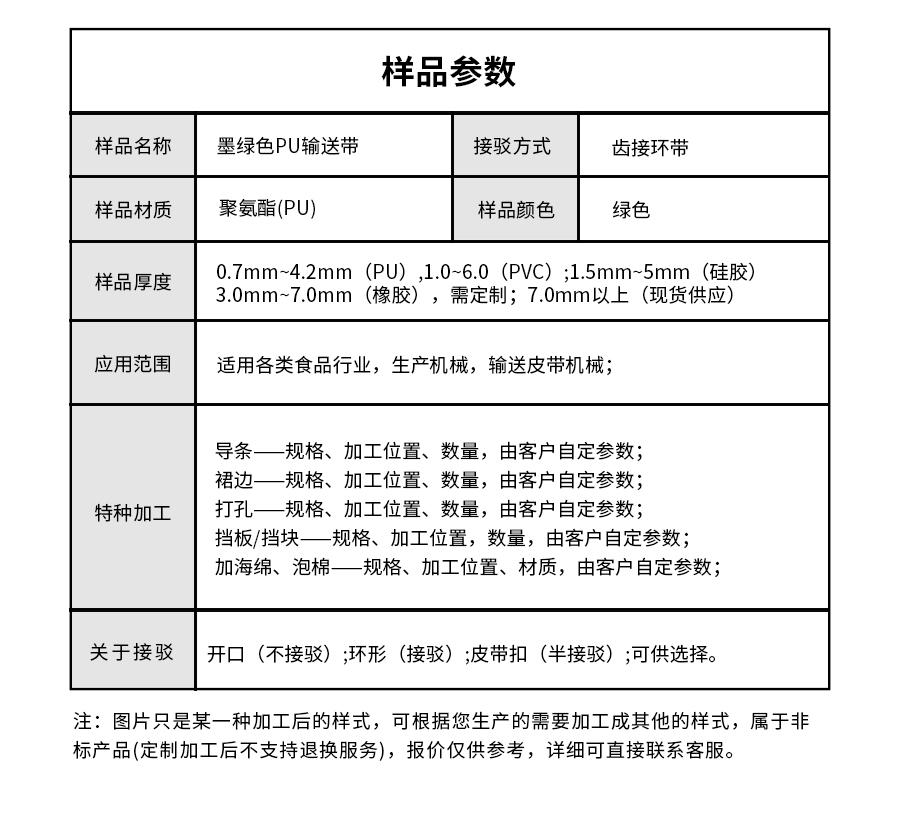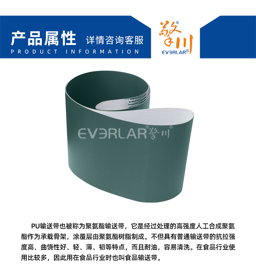 產(chǎn)品名稱:everlar擎川定制墨綠色PU輸送帶食品包裝輸送皮帶