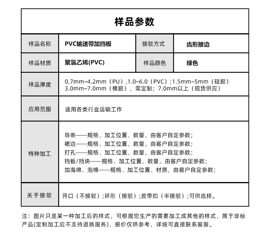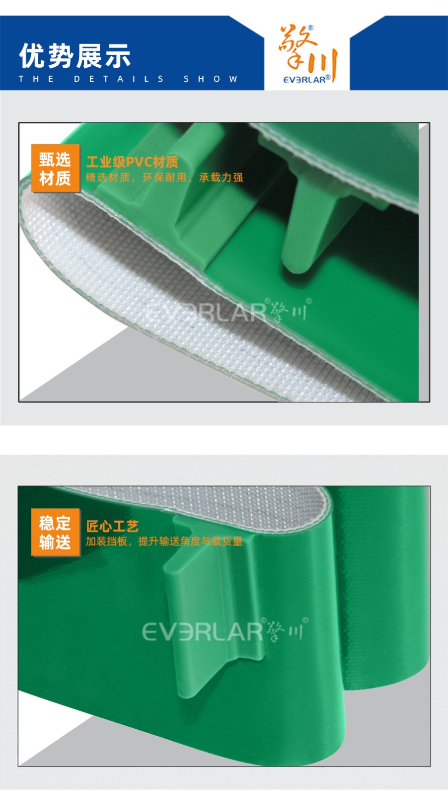 • 擎川everlar定制綠色加擋板PVC輸送帶