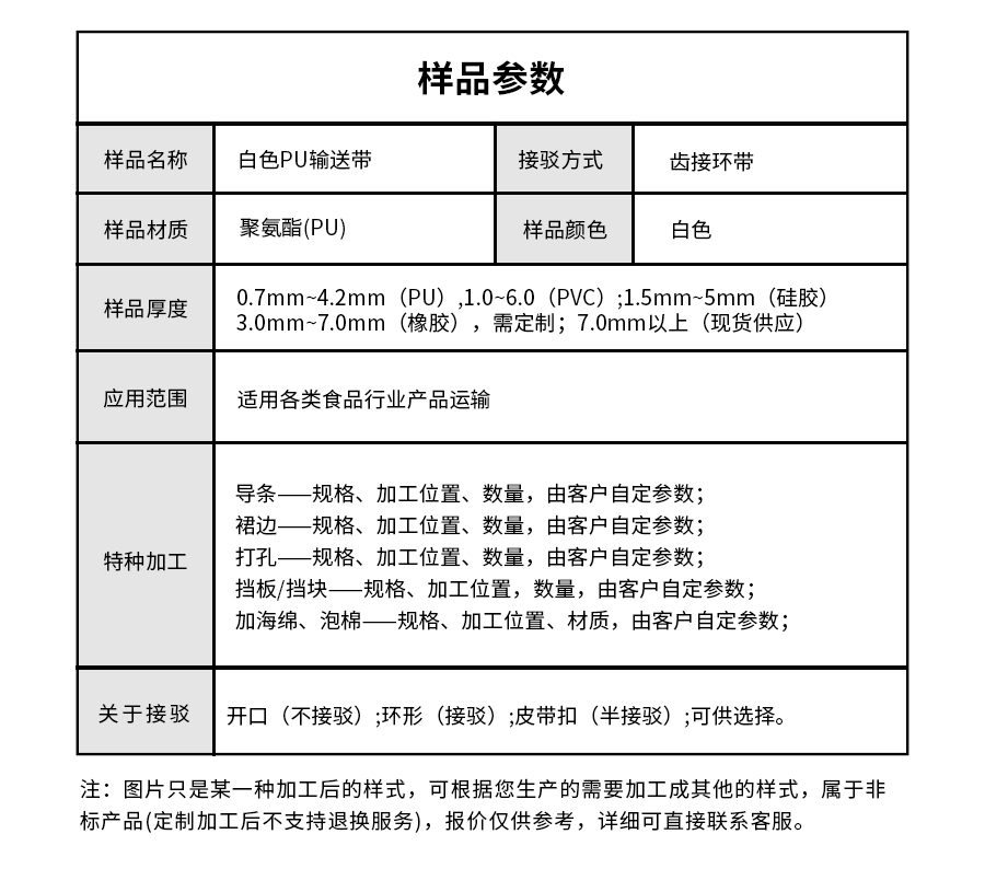 產(chǎn)品名稱:擎川everlar定制白色PU輸送帶
