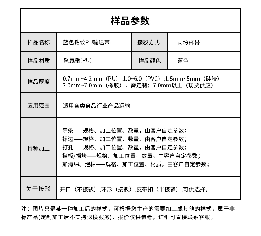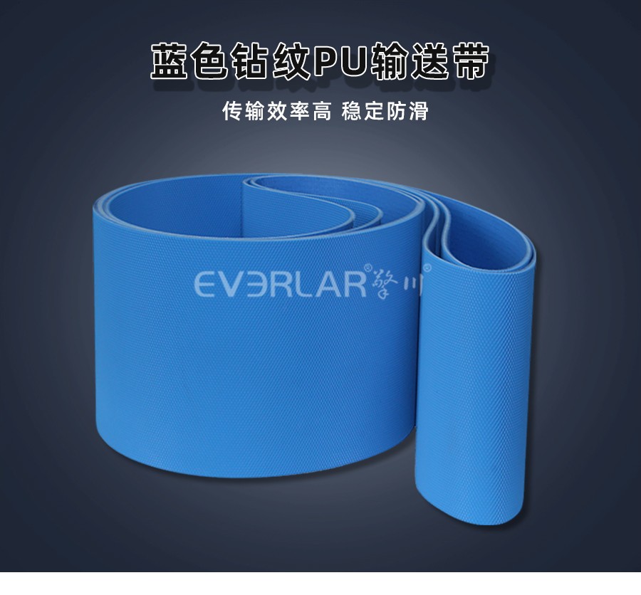 • 產(chǎn)品名稱:擎川everlar定制藍色鉆紋PU輸送帶食品輸送帶