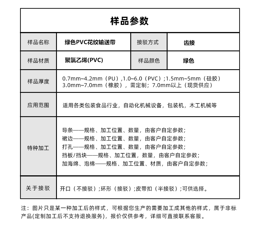 • 產(chǎn)品名稱:擎川everlar定制綠色花紋PVC輸送帶食品輸送帶