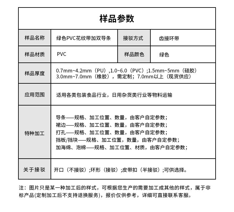 產(chǎn)品名稱:綠色花紋PVC輸送帶加雙導(dǎo)條食品輸送帶擎川工業(yè)皮帶