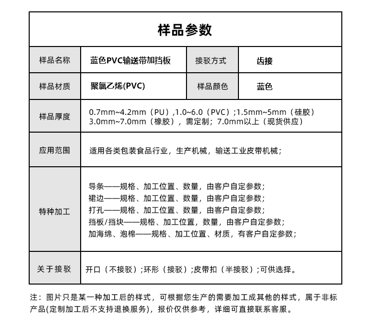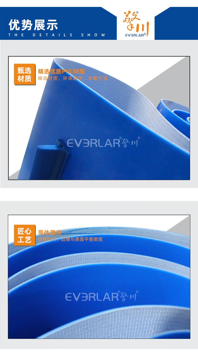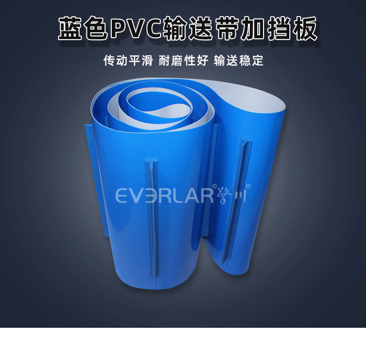 產(chǎn)品名稱:藍(lán)色PVC輸送帶加擋板耐磨耐油耐腐蝕工業(yè)皮帶定制