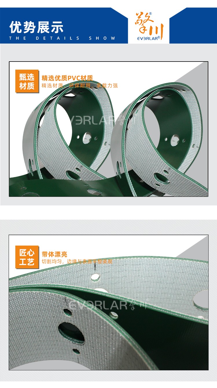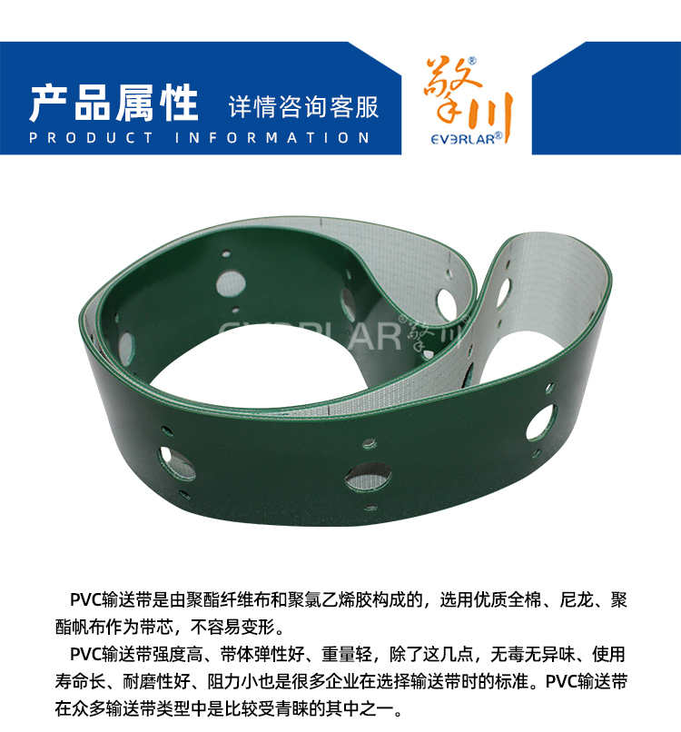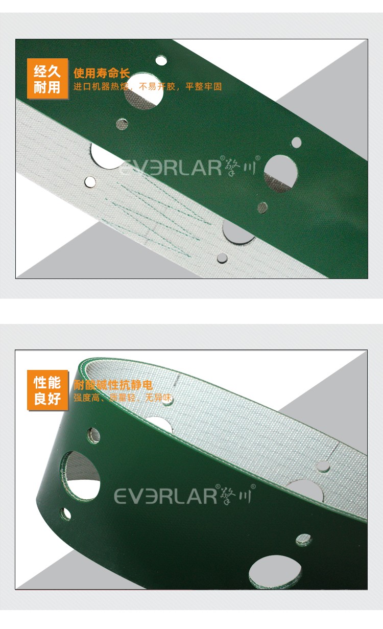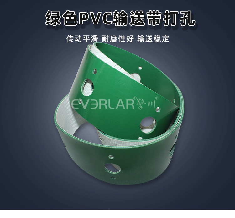 • 產(chǎn)品名稱:綠色PVC輸送帶加打孔耐磨耐腐蝕防靜電工業(yè)皮帶定制