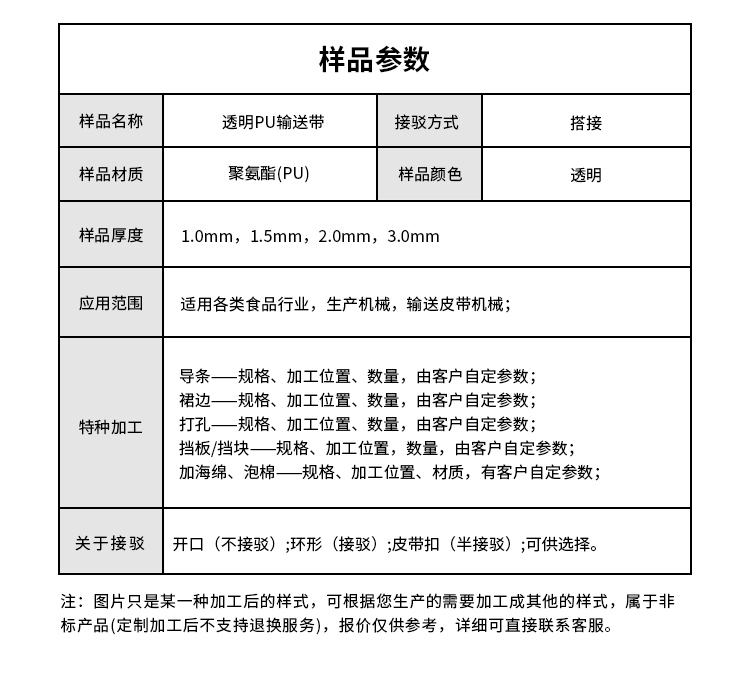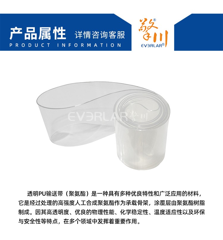 • 產(chǎn)品名稱:透明PU輸送帶耐磨易清潔耐腐蝕工業(yè)皮帶定制