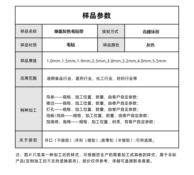 • 產(chǎn)品名稱:單面毛氈輸送帶耐高溫耐切割防靜電工業(yè)皮帶