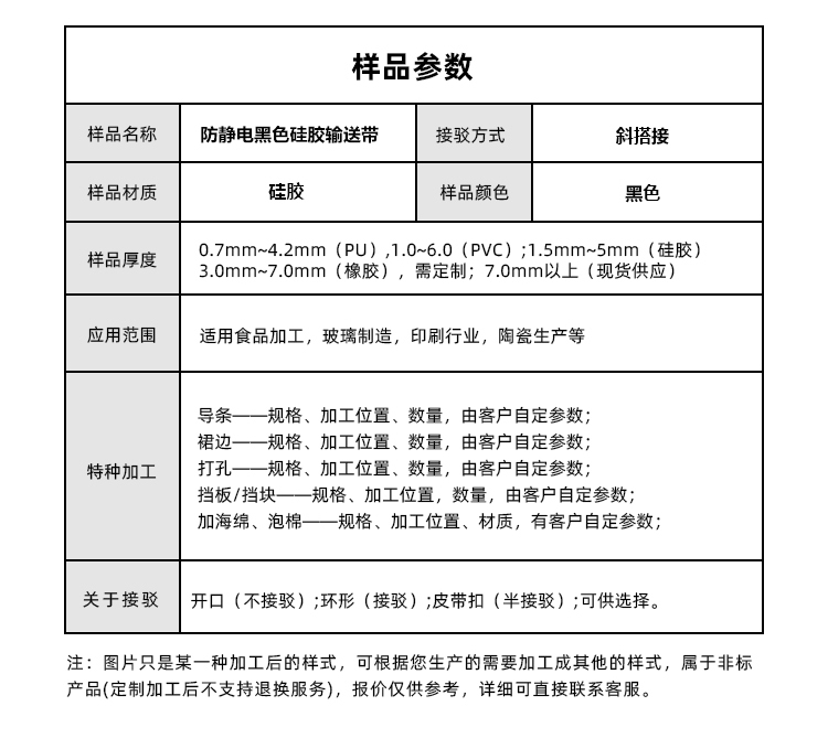 產(chǎn)品名稱:防靜電黑色硅膠輸送帶防粘耐高溫防靜電工業(yè)皮帶