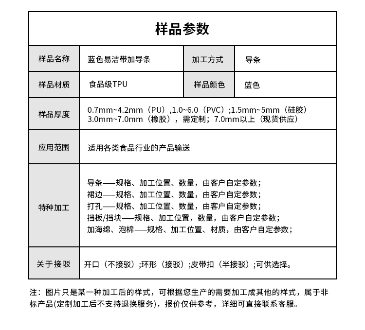 產(chǎn)品名稱(chēng):易清潔輸送帶耐磨耐油易清潔工業(yè)皮帶