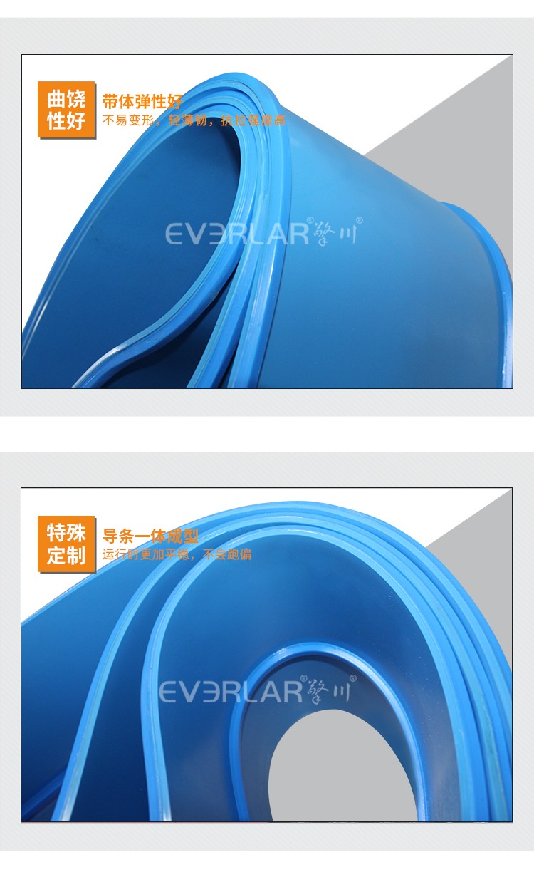 藍(lán)色PVC輸送帶加裙邊擋板導(dǎo)條耐磨耐油耐腐蝕工業(yè)皮帶定制