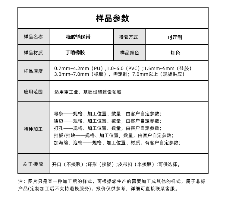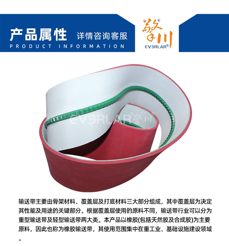 • 產(chǎn)品名稱:橡膠輸送帶加導(dǎo)條耐磨防滑耐溫工業(yè)皮帶