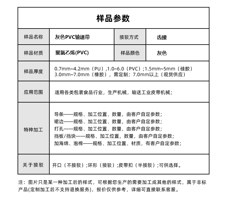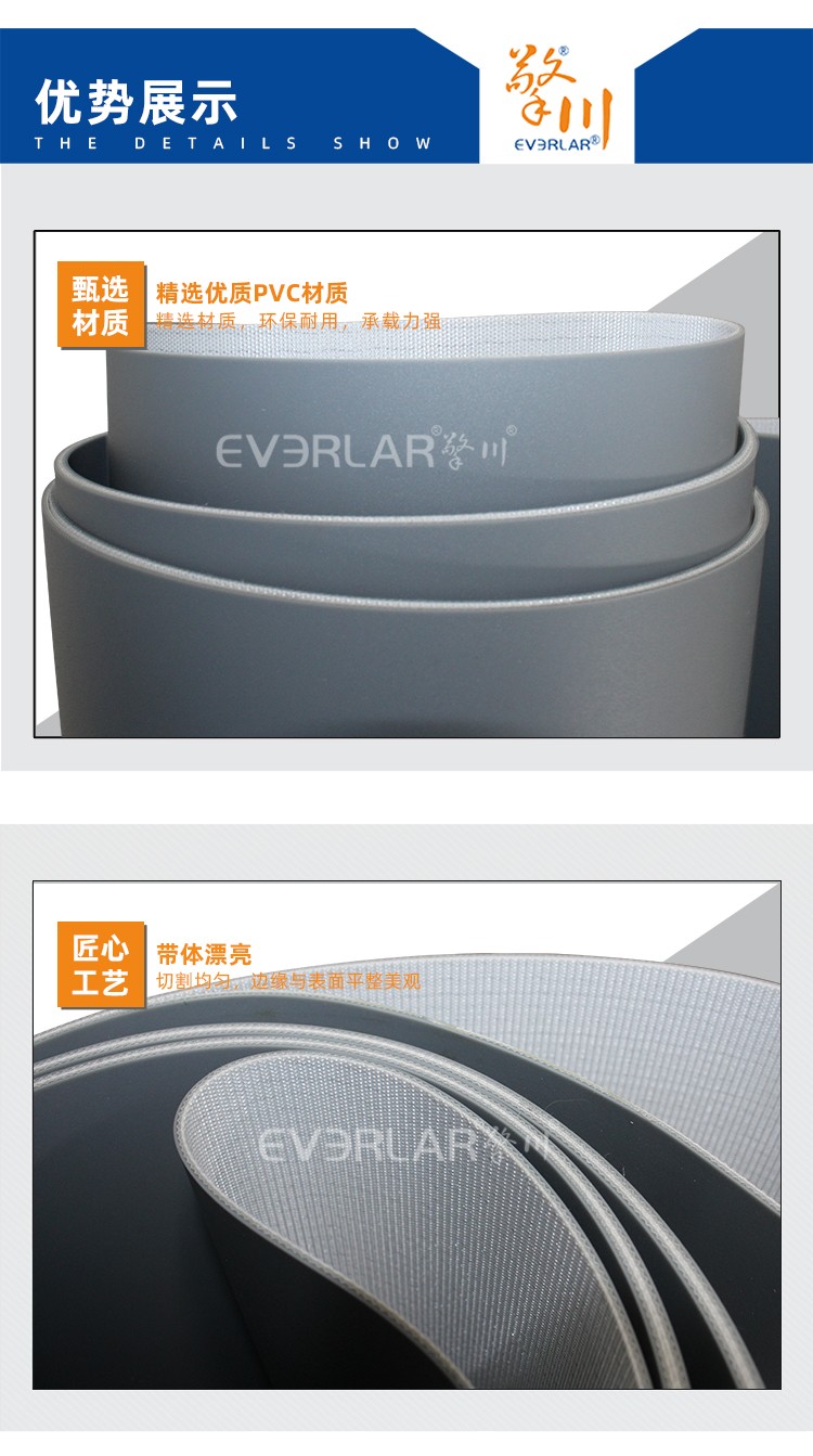 • 產品名稱:灰色PVC輸送帶耐磨平穩(wěn)耐腐蝕包裝機械工業(yè)皮帶定制