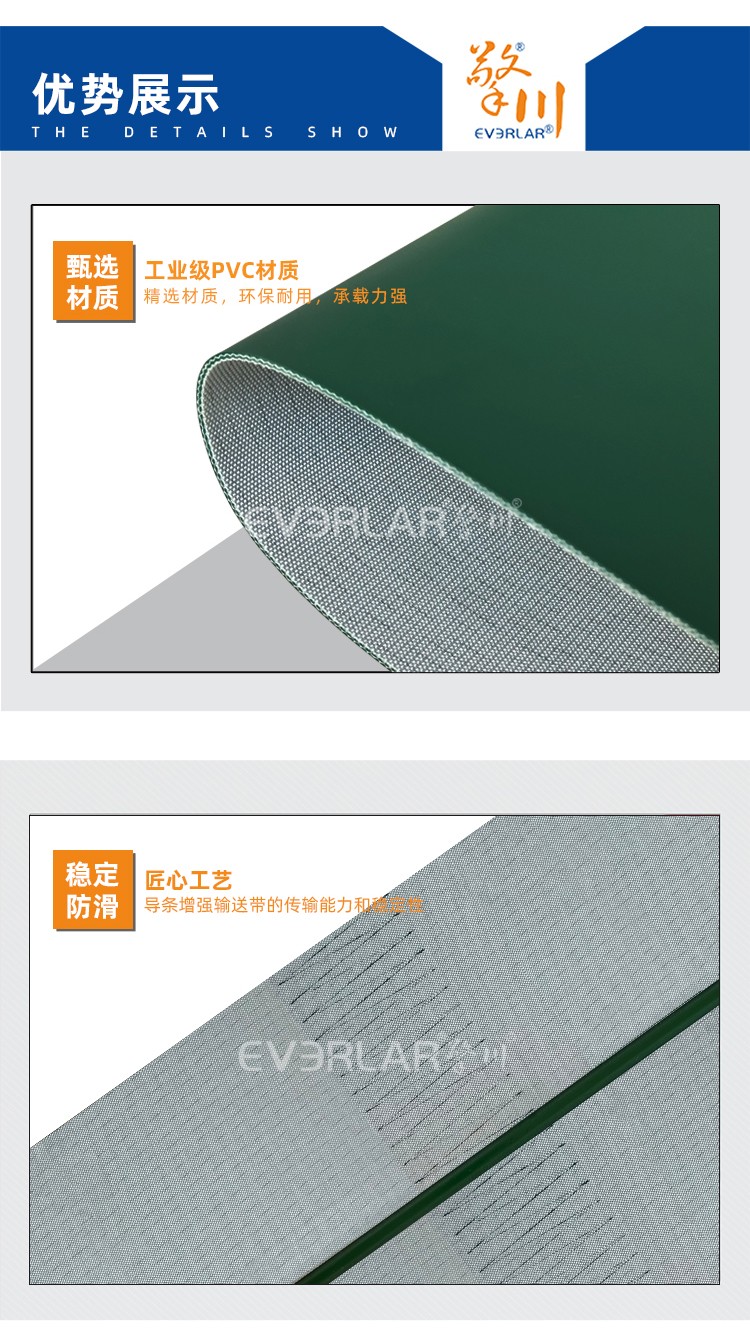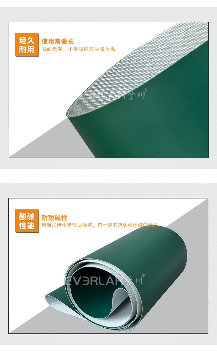 • 產(chǎn)品名稱:墨綠啞光PVC加導條耐磨耐腐蝕耐高溫工業(yè)皮帶