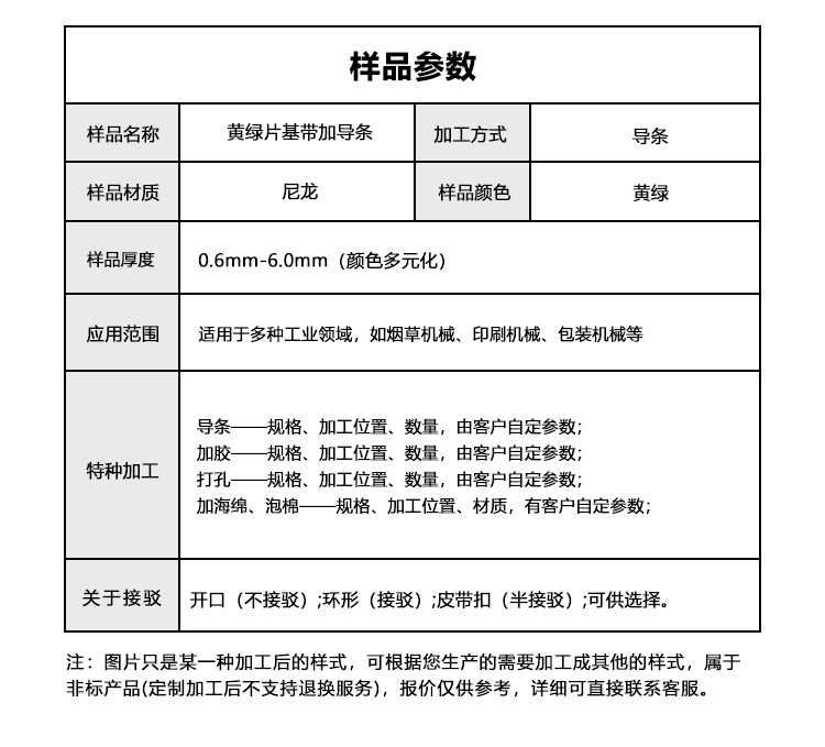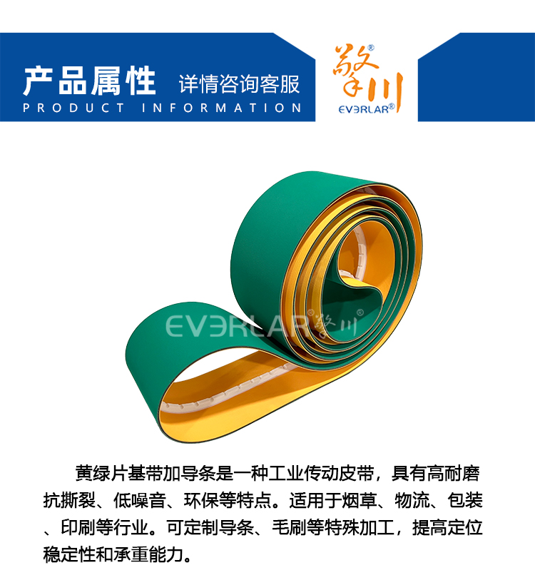 • 產(chǎn)品名稱:黃綠片基帶加導條耐磨防滑電子行業(yè)電子元件分揀機工業(yè)皮帶擎川定制