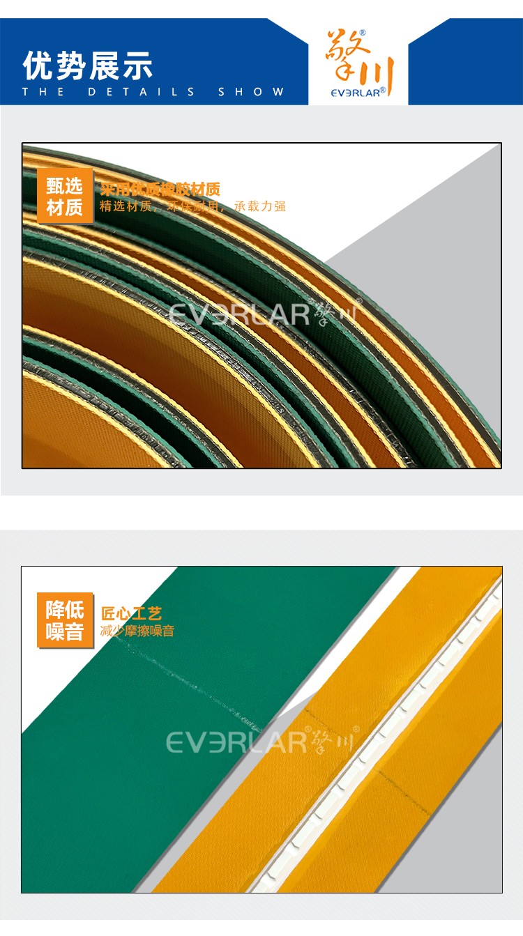 • 黃綠片基帶加導條耐磨防滑電子行業(yè)電子元件分揀機工業(yè)皮帶擎川定制