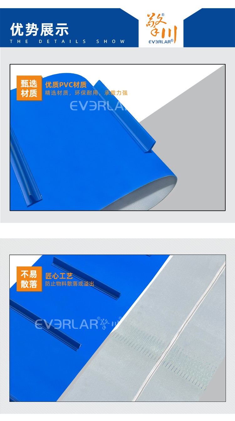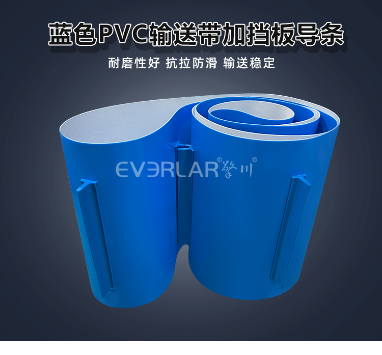 • 產(chǎn)品名稱:藍(lán)色PVC輸送帶加擋板導(dǎo)條耐磨防跑偏防掉落自動化生產(chǎn)線物料傳送工業(yè)皮帶