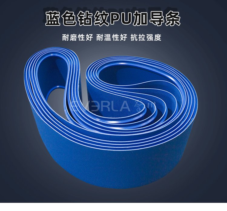 藍(lán)色鉆紋PU加導(dǎo)條的輸送帶主體材質(zhì)為聚氨酯(PU)。聚氨酯材料賦予該P(yáng)U輸送帶耐油、耐磨及耐寒特性。這種材料特性使其適應(yīng)食品加工環(huán)境中的復(fù)雜工況,適用于糖果、餅干、肉類(lèi)等物料的輸送環(huán)節(jié)。